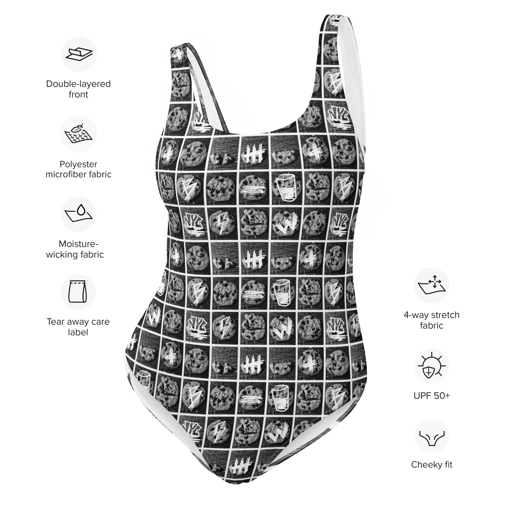 Introducing our Cookies and Cream Women's Swimsuit, a deliciously stylish choice for your next beach or poolside adventure. This swimsuit is designed to make a statement with its sleek and modern silhouette, complemented by a captivating cookies and cream-inspired pattern.
