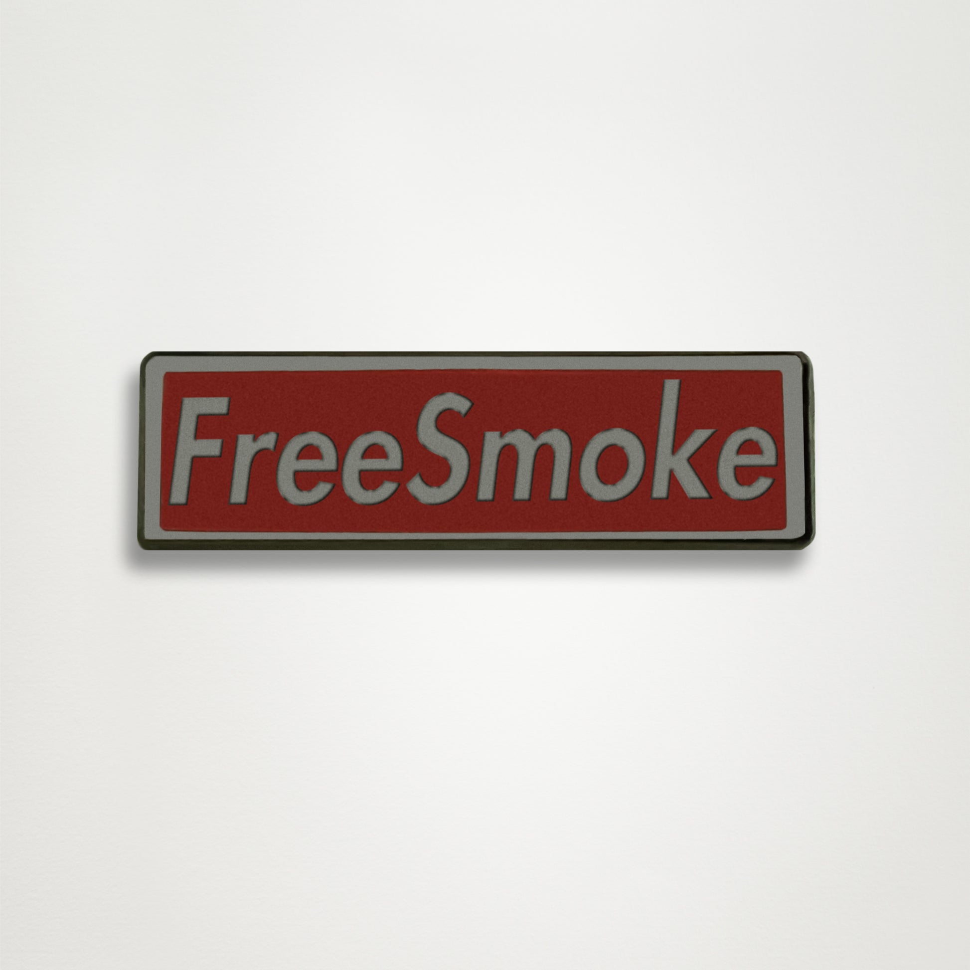 1" enamel black metal version of our classic "FREESMOKE" logo.